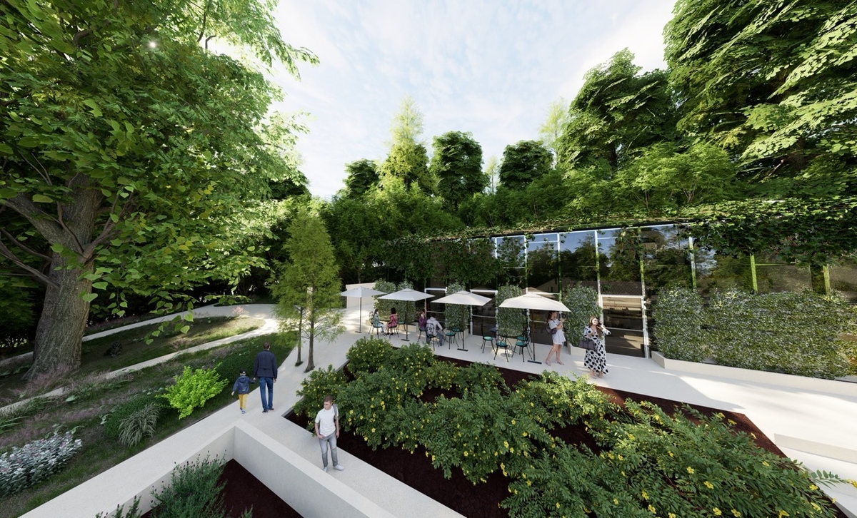 Projekt naglašava skladnu integraciju novih sadržaja s povijesnim perivojem. Zapadni staklenik oblikovan je kao stakleni volumen s dodatnim biljnim omotačem pročelja, koji ublažava blještavost stakla i poboljšava mikroklimu, dok istočni staklenik zadržava izvornu konstrukciju i detalje, s podlogom za edukaciju i izložbu biljaka. Centar za posjetitelje i multimedijalni prostor logički usmjeravaju protok posjetitelja i naglašavaju turistički značaj perivoja.