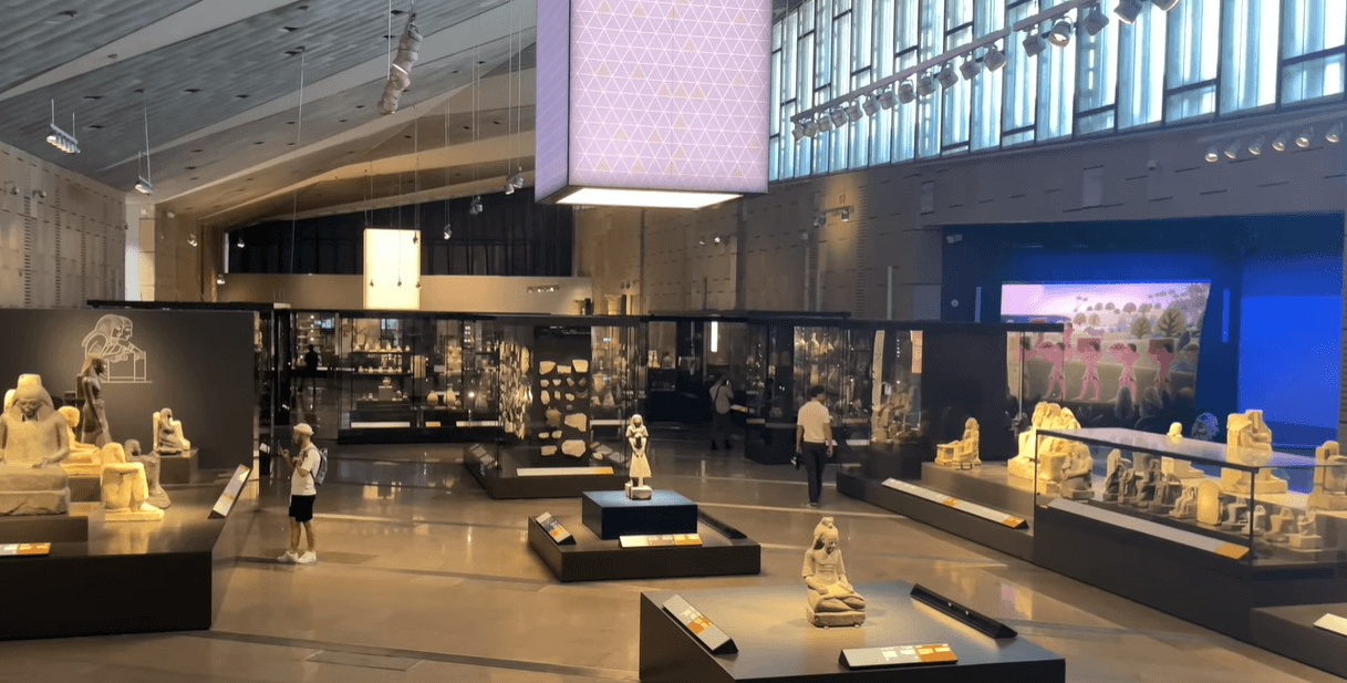Muzej se prostire na površini većoj od 500.000 kvadrata i sadrži 12 galerija u kojima je izloženo više od 24.000 predmeta. GEM sadrži zbirku egipatskih artefakata iz svih razdoblja civilizacije, od predinastičkog do koptskog razdoblja, s procijenjenim ukupnim brojem od preko 100.000 predmeta.