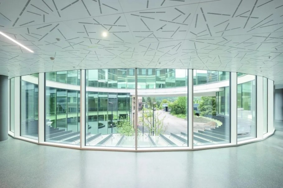 Prirodno svjetlo obilno ulazi u unutrašnjost kroz velike staklene površine i jedanaest unutarnjih dvorišta. Takav pristup stvara osjećaj smirenosti i povezanosti s prirodom unutar zdravstvene ustanove.