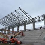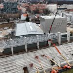 Pogled prema tribinama odmah otkriva čeličnu konstrukciju koja je još u povojima, ali već sada plijeni pozornost. U nadolazećem razdoblju građevince STRABAG-a očekuju radovi na krovištu. Kako ističe Sedlar, posebno zahtjevni su uglovi stadiona, gdje izvedba lučne konstrukcije s velikim rasponima među stupovima traži dodatnu preciznost. Zapadna tribina predstavlja spoj monolitne i montažne konstrukcije, što dodatno povećava tehničku složenost.