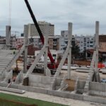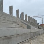 Predgotovljeni stupovi predstavljaju poseban izazov. Njihov prijevoz i organizacija iznimno su zahtjevni te se odvijaju u noćnim satovima, uključujući i transport kosih greda. Svakodnevna organizacija dopreme armature, šljunka i ostalih materijala zahtijeva dodatni trud i angažman svih uključenih. Stupovi koji čine dio tribina visoki su 19,5 metara, od čega je 18 metara iznad razine tla, a njihova masa iznosi između 55 i 60 tona.