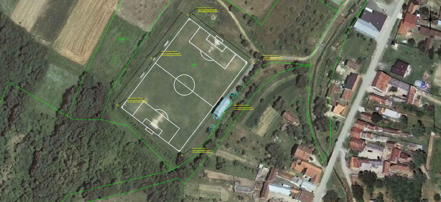 Projektom je predviđena zamjena zastarjelih reflektora na postojećih šest rasvjetnih stupova oko igrališta. Ugradit će se suvremeni LED reflektori s asimetričnom distribucijom svjetla, visoke energetske učinkovitosti i dugog vijeka trajanja, čime će se značajno poboljšati kvaliteta rasvjete i smanjiti potrošnja energije. Sustav odvodnje igrališta rješavat će se ugradnjom drenažnih cijevi ispod terena, koje će prikupljenu oborinsku vodu odvoditi u obližnji kanal, čime će se spriječiti zadržavanje vode i propadanje travnjaka.