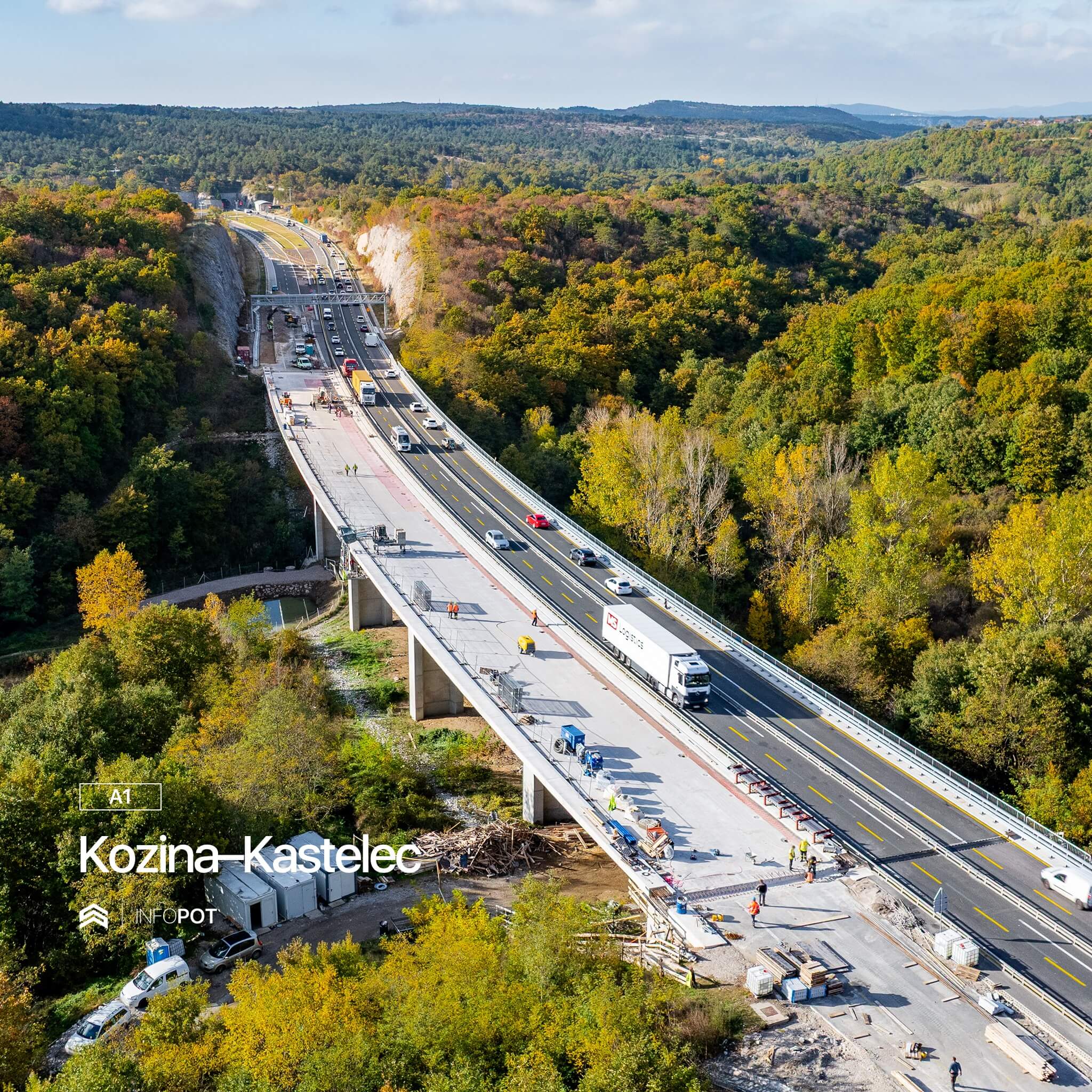 Radovi na Primorskoj autocesti u Sloveniji napreduju prema planu. Sveobuhvatna obnova dionice između Kozine i Kastelca započela je 19. ožujka 2025. godine, a obuhvaća rekonstrukciju ukupno 9,9 kilometara kolnika, pratećih objekata te odmorišta Ravne.