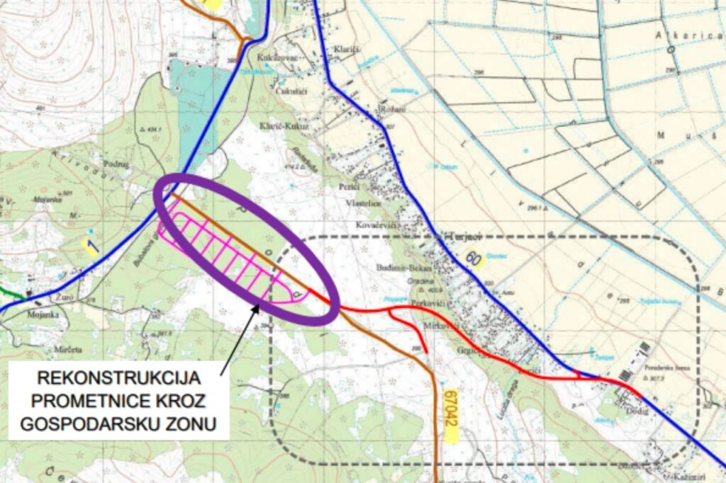 Buduća trasa D60, uključuje rekonstrukciju trase u gospodarskoj zoni | Foto: screenshot EOJN