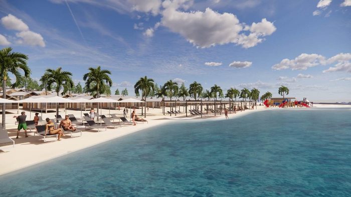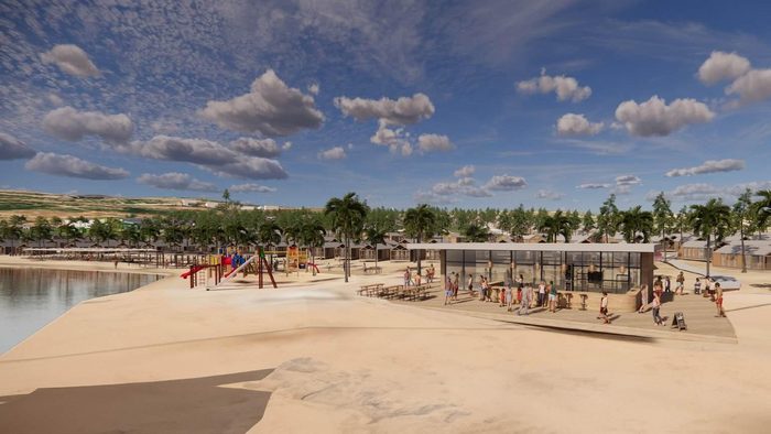 Vizualizacije kampa prikazuju vesele posjetitelje, djecu i obećane sadržaje, između ostalog primamljivu pješčanu plažu i tirkizno, čisto more. Ali, čekaj malo, kako je moguće da će resort imati privatnu plažu?