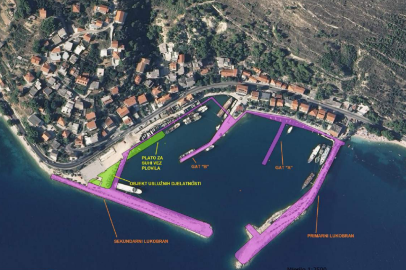 Posebno je zanimljiv plan izgradnje suhe marine, koja će uključivati pralište brodova i dizalicu za manipulaciju plovilima.