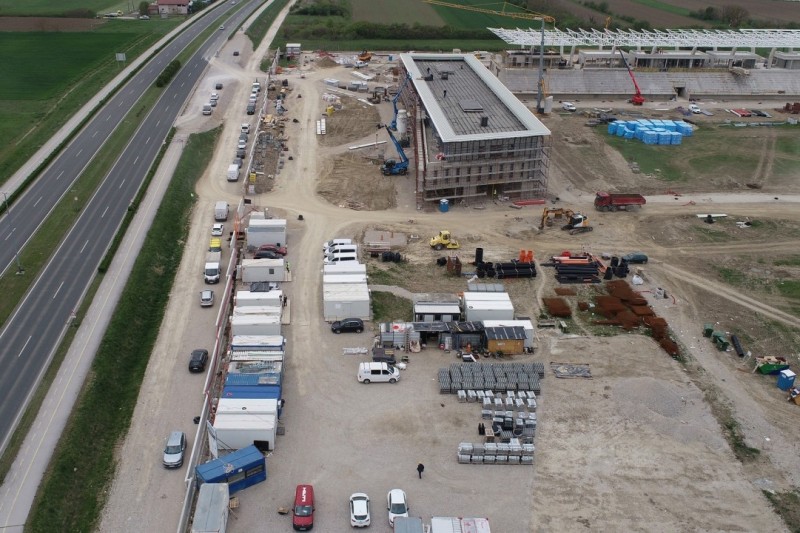 Podsjetimo, na budućem stadionu dovršeni su gotovo svi armiranobetonski radovi, dok je u tijeku izvedba armiranobetonske konstrukcije sjedećeg dijela tribina. Izvedena je i većina armiranobetonskih stupova koji će nositi čeličnu krovnu konstrukciju za natkrivanje tribina. Završeni su i trakasti temelji prilaznog pješačkog mosta za pristup stadionu, dok se radovi na njegovim nadzemnim elementima trenutačno izvode.