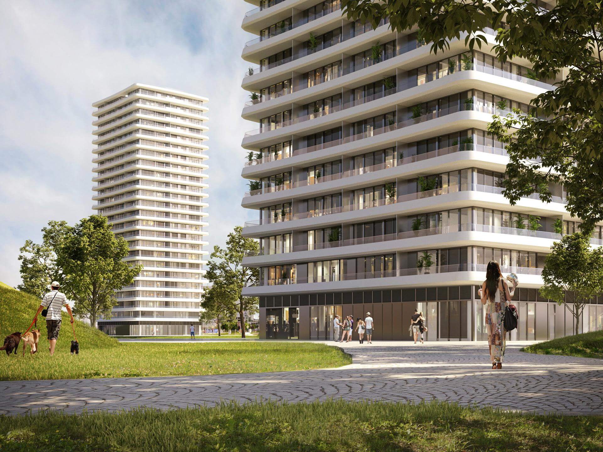– Okoliš je integralni dio koncepta i oblikovan je kao urbani vrt koji zelenilom prekriva javne sadržaje skrivene u podzemnim etažama. Isključivo pješački, vrt nudi prostor za druženje, dječja igrališta i različite namjene ovisno o sezoni (piknik, sanjkanje, sport i sl.). Zelenilo se mijenja tijekom godine i stvara prekrasan prirodni krajolik u kojem se može uživati iz svih apartmana u tornjevima, piše u opisu.