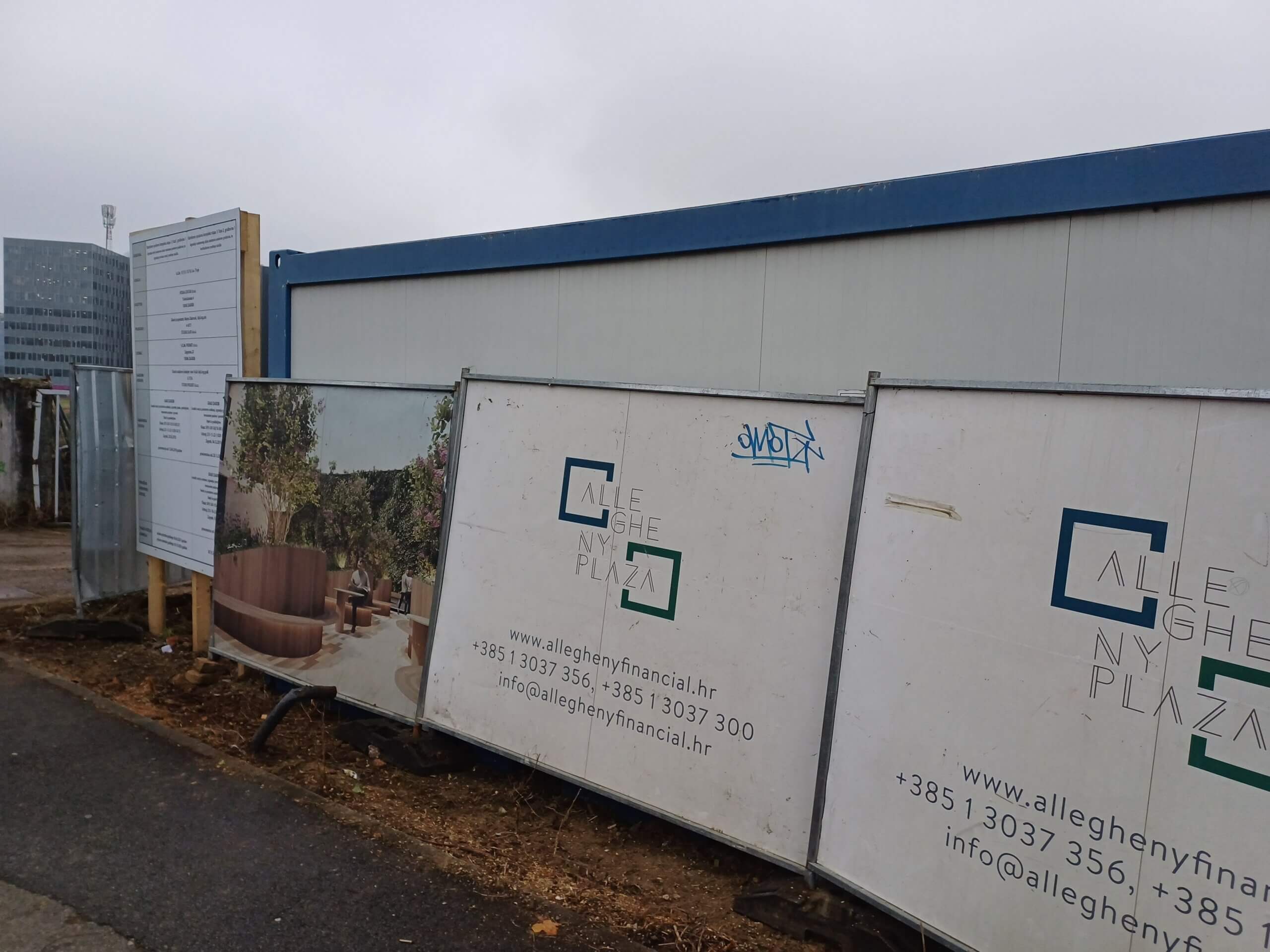 Na ogradi gradilišta dva su plakata na kojima piše ‘Allgheny Financial’ te je postavljena i jedna vizualizacija Allghenyja. Prema opisu na stranici 3LHD-a, projekt ‘4 tornja’ započet 2010. otkriva detalje planova na Zavrtnici. Prema opisu zamišljena su četiri tornja s po 24 etaže, na parceli od skoro 30.000 kvadrata. Zgrade bi promijenile vizuru Zagreba penjući se do čak 123 metra nadmorske visine.