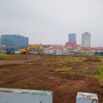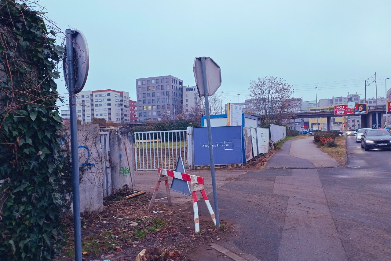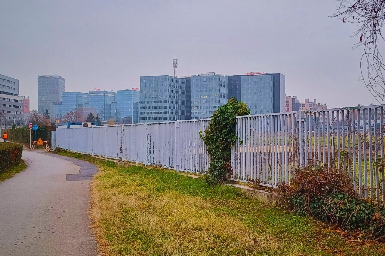 Iako na granici sa širim gradskim centrom, ova lokacija ipak se nalazi u poslovnoj zoni, odmah iza prepoznatljive zgrade HT-a i poteza staklenih poslovnjaka koji su u Zagrebu građeni u 2000-ima, a neki i kasnije. U skladu s time, ovdje bi trebali niknuti neboderi. Prošli smo pored gradilišta na kojemu smo vidjeli jedan bager i jedan kamion, a na ulazu veliku tablu na kojoj smo pročitali da je gradilište prve etape novog mega stambeno-poslovnog projekta otvoreno krajem listopada ove godine. Građevinske dozvole pa i sam projekt prilično su stariji.