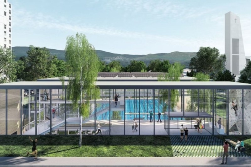 Nova zgrada u Podbrežju dio je većeg projekta od 42 milijuna eura. Sve se plaća iz gradskog proračuna, a uključuje zgrade, bazen i trgovački centar.