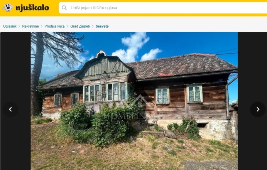 Predivna tradicijska drvena kuća s tri sobe, ali u upitnom stanju. Uz nju prodaje se i sedam gospodarskih zgrada, a cijelo imanje se prostire na 1.550 četvornih metara, na samo nekoliko minuta od Sesveta. Koliko biste dali za ovaj 'ulov'? Imanje je oglašeno po cijeni od 80.000 eura.