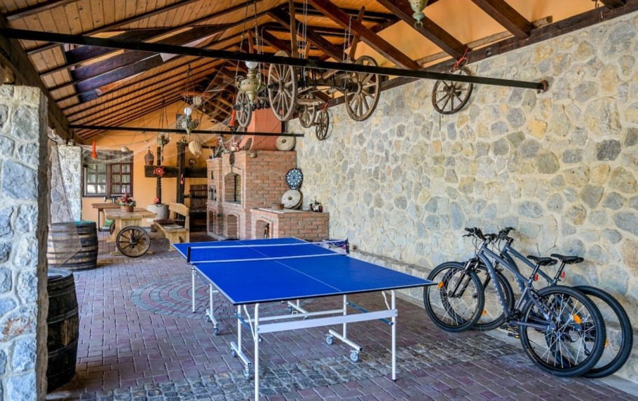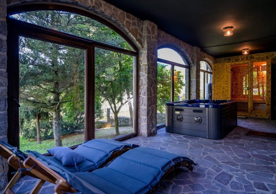 Od dodatnih sadržaja izdvajaju se bazen s toplinskom pumpom, jacuzzi, sauna te natkriveni prostor s roštiljem i krušnom peći. Tu su i vinoteka kapaciteta oko 500 boca, prostrano dvorište, vrt i vlastito parkiralište.