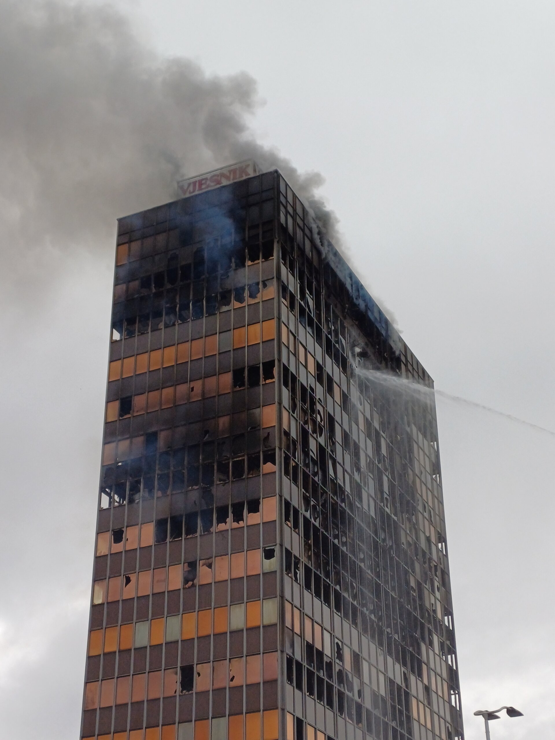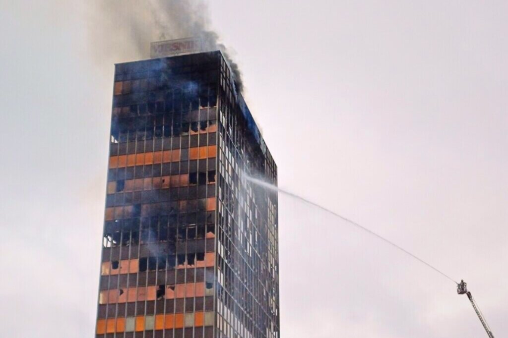 Sinoć iza 23 sata krenuo je gorjeti simbol Zagreba, medija, ali i strateški važna državna nekretnina nepoznate sudbine – Vjesnikov neboder. Iako se na križanju Savske ceste i Slavonske avenije, na adresi Slavonska 4 već godinama ne postoji Vjesnik, oznaka na vrhu nebodera podsjeća na njegovu povijest. No, ovu tablu već satima guta dim, a budućnost kultne građevine sad je još više neizvjesna. Pretpostavlja se da će vatrogasci imati posla cijeli dan.