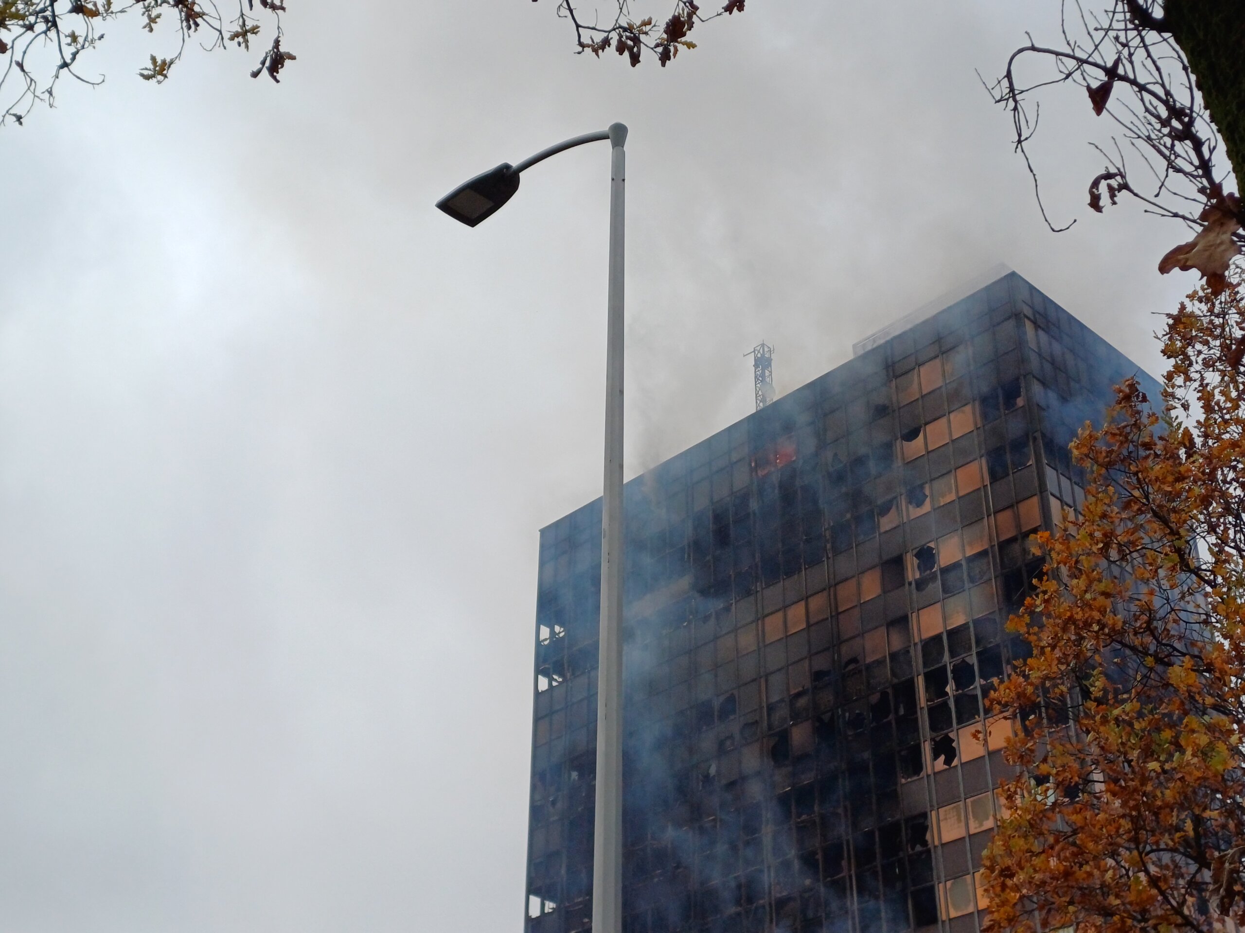 Kako smo sami vidjeli na terenu oko 9 sati, teško da više postoji dio nebodera koji nije zahvatio požar, jer je nakon cijele noći tada i dalje plamtjelo. S najviših katova nebodera prvo se stišala, a zatim opet razgorjela vatra koju su vatrogasci i dalje neumorno gasili. Oko zgrade moglo se čuti glasno pucanje zagorjelog materijala, a ploče i papiri letjeli su naokolo.