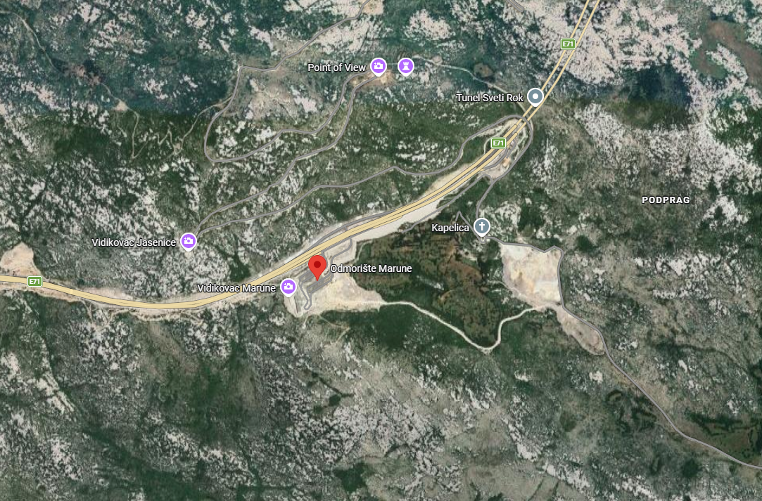 Napušteno odmorište Marune na autocesti A1, poznato i kao ‘Velebitska kraljica’, godinama propada, s razbijenim prozorima i zidovima prekrivenim grafitima. Nakon šest neuspjelih natječaja, konačno se javila tvrtka iz okolice Šibenika koja planira dovršiti hotel kategorije tri zvjezdice uz bankarsku garanciju od 300 tisuća eura. Iako je objekt simbol propalih planova, pogled s njegove lokacije i dalje privlači turiste, a uskoro bi mogao doživjeti i bolje dane.