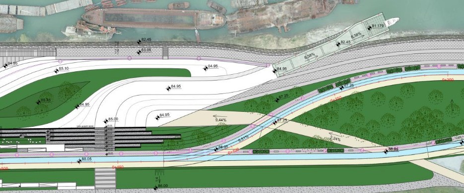 Imat će zeleni pojas s odmorištima i žardinjerama, drvećem, klupe za odmor i koševi za smeće. Dio ove dionice je su i pješačka, te biciklistička staza širine po 2,4 metra. Sukladno projektnom zadatku ovdje će biti izvedeno i stepenište širine 18 metara prilagođeno potrebama veslačkog kluba.