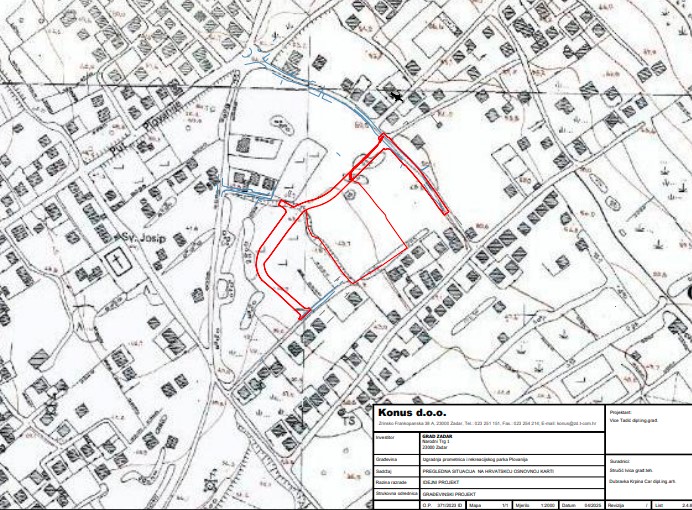 Predviđeni zahvat pokrio bi oko 6.870 četvorna metra na dijelu katastarskih čestica 2990 i 2991, u katastarskoj općini Zadar. Na zapadnoj strani obuhvata trebalo bi se graditi nogometno igralište dimenzija od 32 metra sa 56 metara.