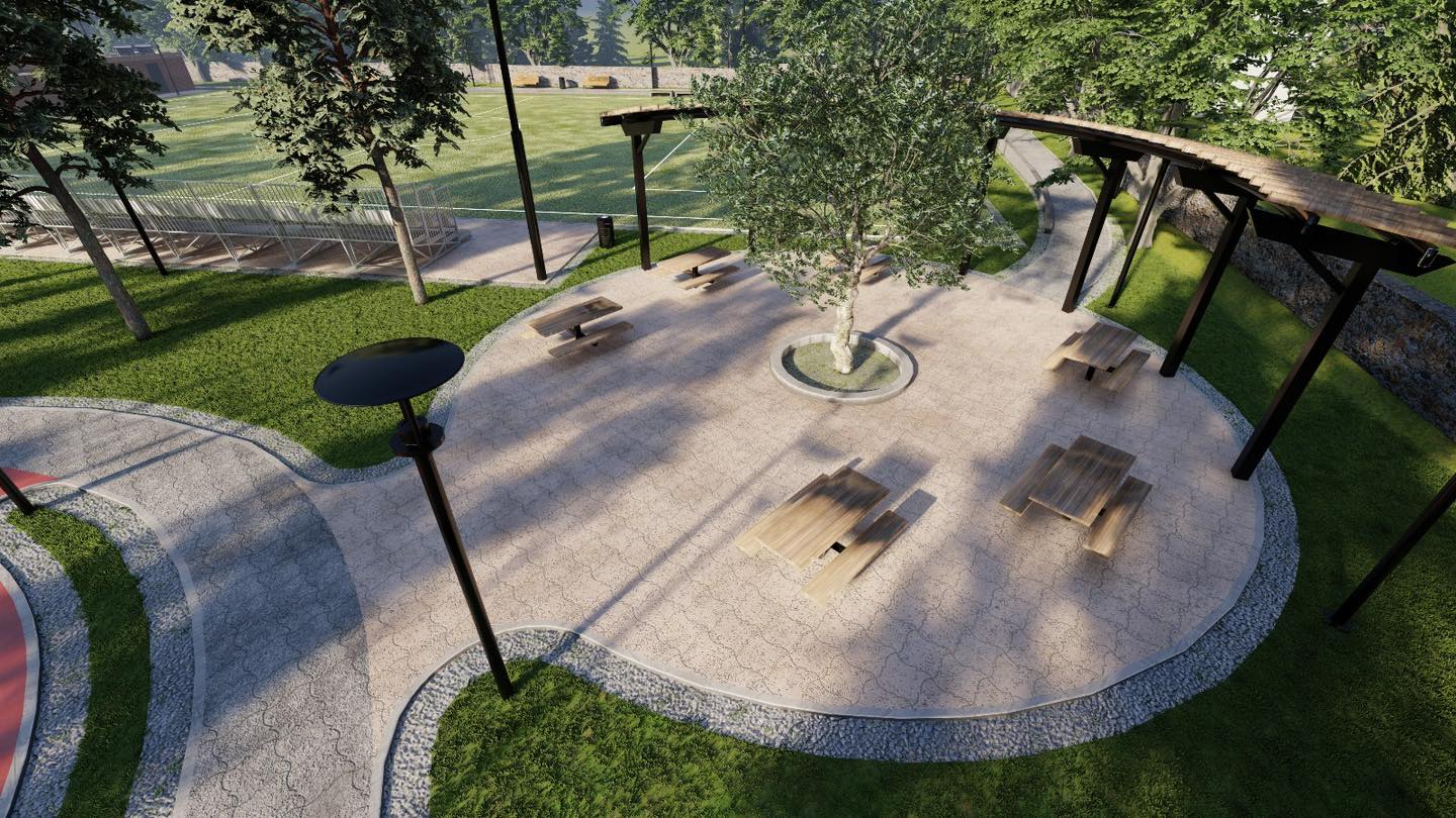 U jugozapadnom dijelu obuhvata predviđeno je uređenje parka s dječjim igralištem, boćalištem i prostorom za druženje. Kroz park se planira šetnica koja povezuje dijelove dječjeg igrališta i proteže se od zapadnog do južnog dijela parka.