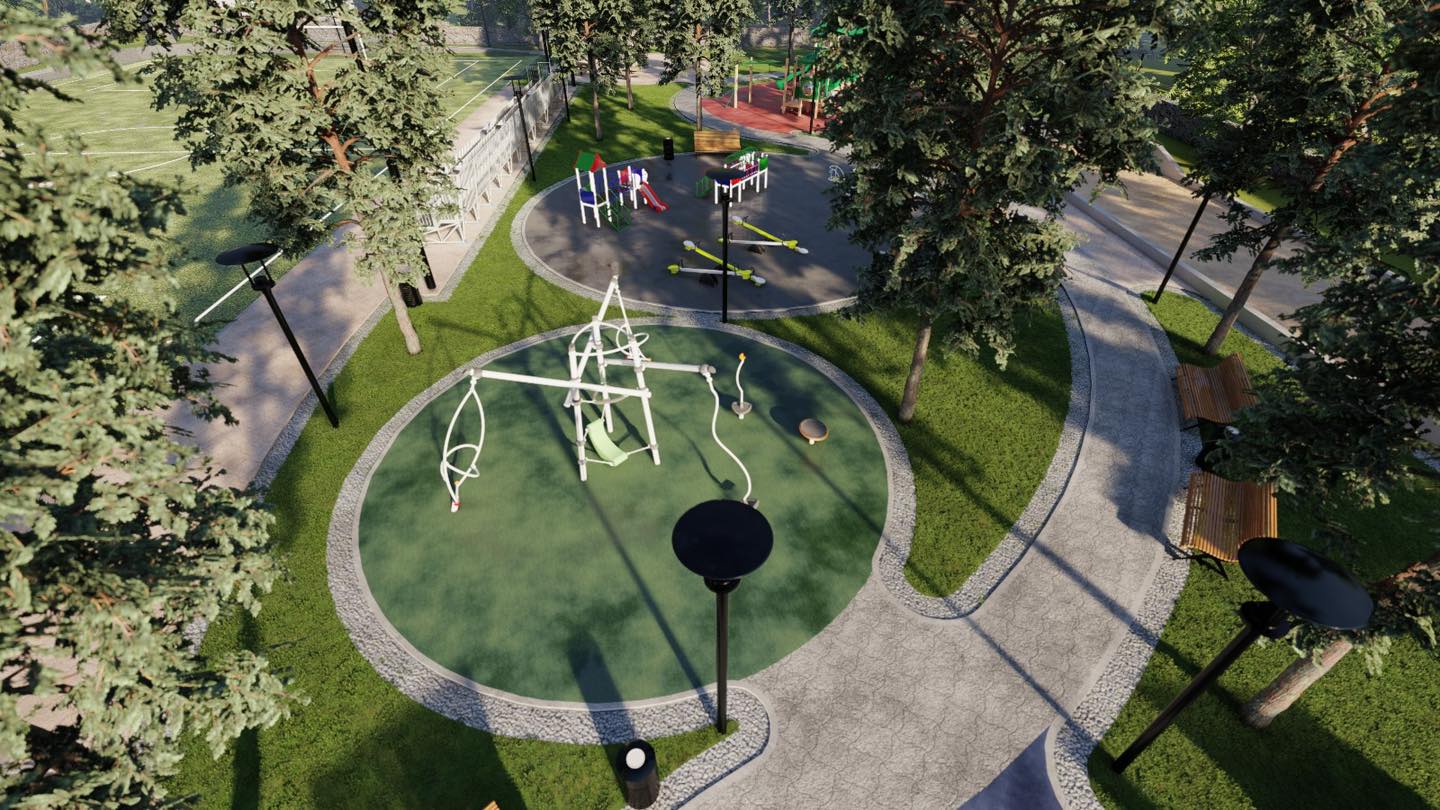 U jugozapadnom dijelu obuhvata predviđeno je uređenje parka s dječjim igralištem, boćalištem i prostorom za druženje. Kroz park se planira šetnica koja povezuje dijelove dječjeg igrališta i proteže se od zapadnog do južnog dijela parka.