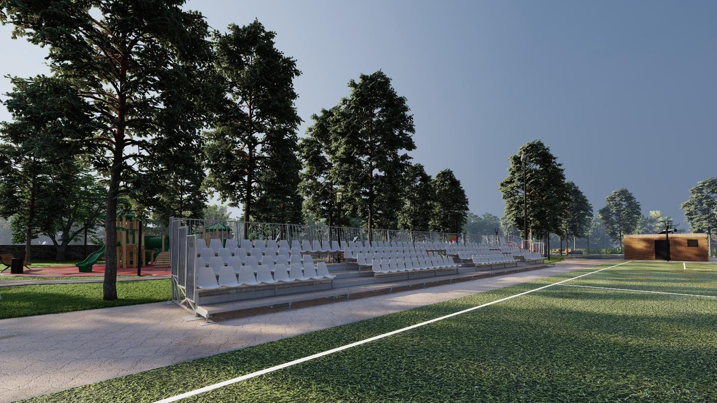 Na jugozapadnoj strani igrališta zamišljen je prostor za tribine gledatelja, a za potrebe parkirališta predviđeno je i parkiralište uz planiranu cestu na sjeverozapadnoj strani. Sjeveroistočno od igrališta bila bi i staza za pješake.