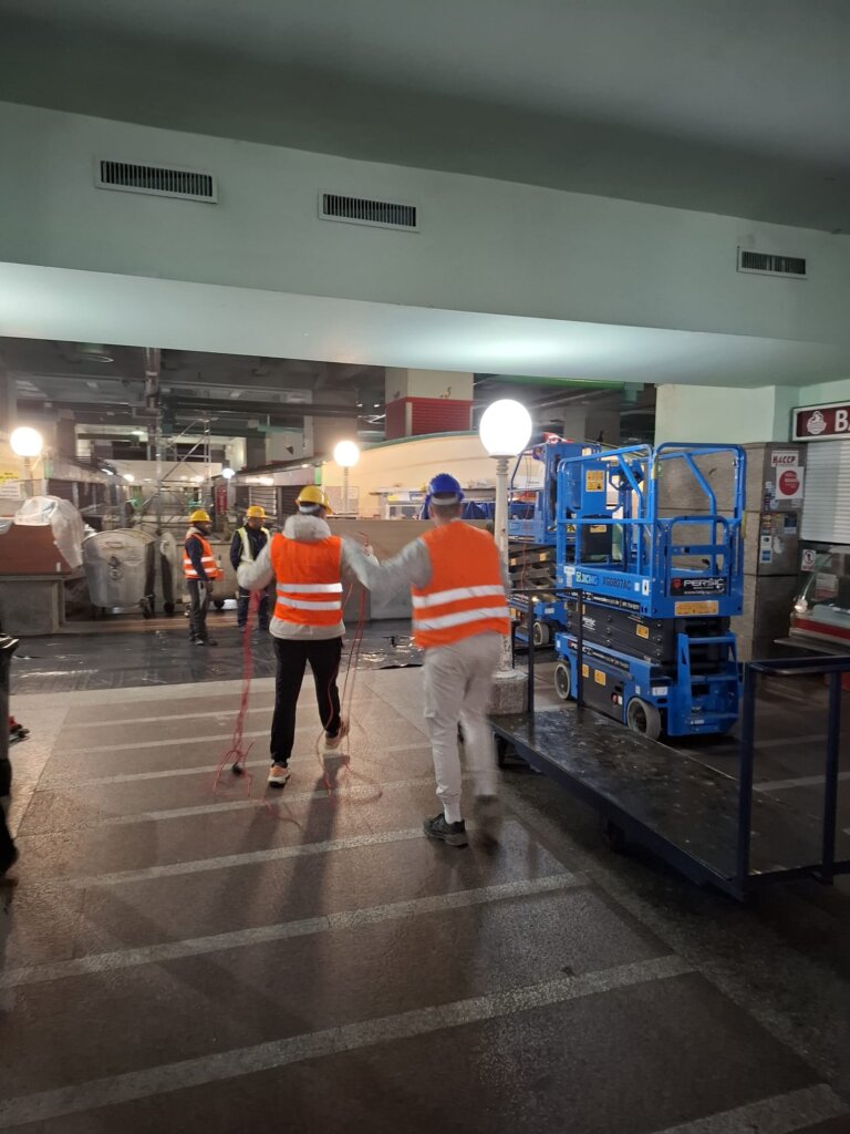 Izvođač radi u dvije smjene, a radi se o 2.500 kvadrata stropne plohe koje treba sanirati, rečeno je o radovima na današnjoj konferenciji za medije. Potrebno je ukloniti svu žbuku ispod stropnih konstrukcija kako bi prestala opasnost od pada žbuke na prodavače ili posjetitelje.