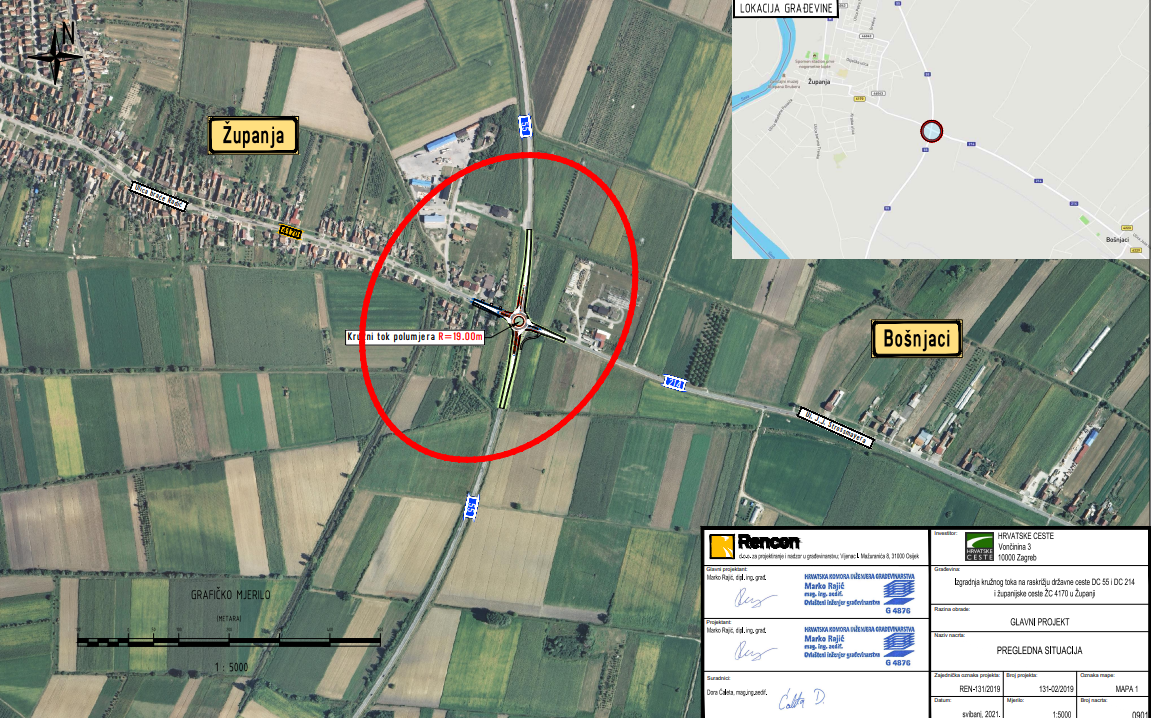 U Županji uskoro započinje rekonstrukcija raskrižja državnih cesta DC55 i DC214 te županijske ceste ŽC4170, koje će uskoro poprimiti oblik modernog kružnog toka. Novi rotor, osmišljen da se skladno uklopi u postojeću trasu, donosi veći stupanj sigurnosti, bolju protočnost i smireniji prometni tok, uz suvremeno riješen sustav odvodnje. Projekt vrijedan 905.100 eura, koji će izvesti hrvatska podružnica austrijskog građevinskog koncerna STRABAG, obuhvaća i rekonstrukciju kolnih prilaza te uređenje okolnih poljskih puteva.