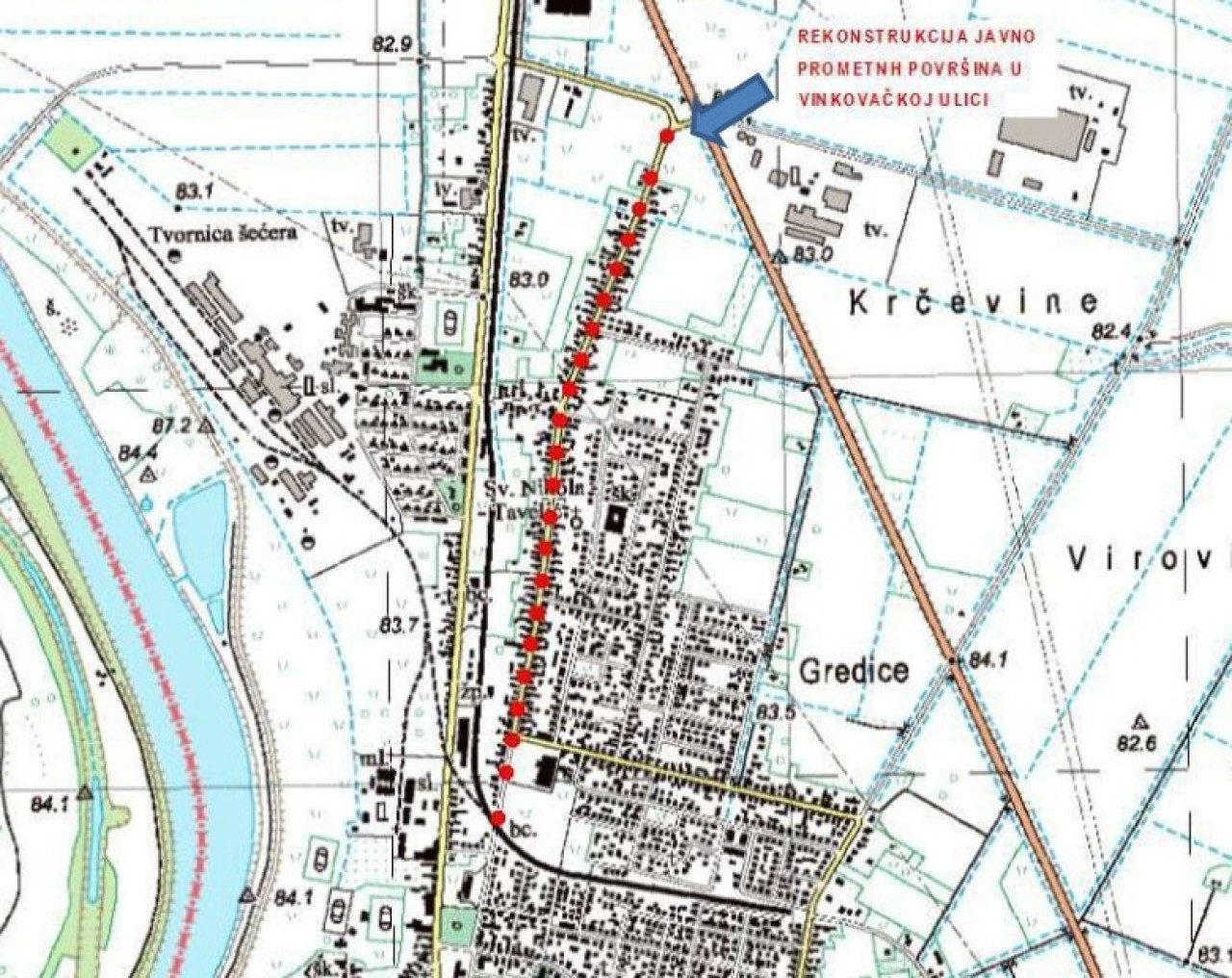 Rekonstrukcija javno prometnih površina u Vinkovačkoj ulici u Županji planirana je na trasi duljine približno 1.700 metara, od spoja Vinkovačke s pružnim prijelazom na prema sjeveru, prema drugoj stranici prometnice prema izlazu na državnu cestu D55.