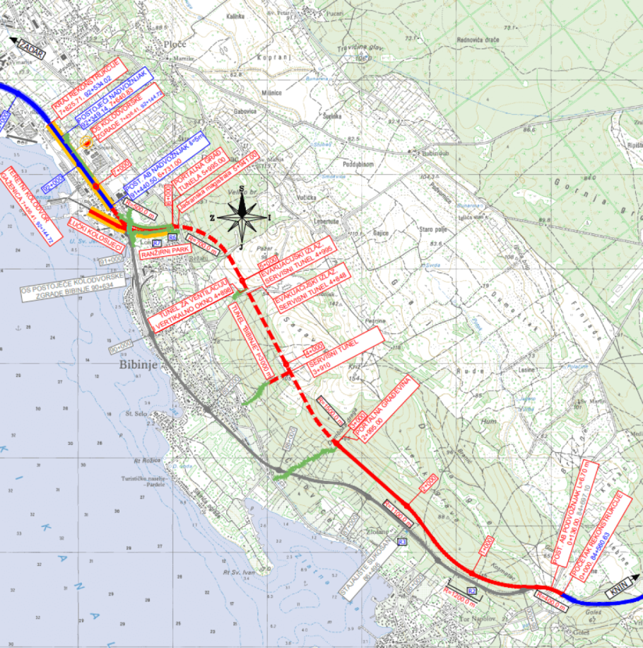 Podsjećamo, dok se obnavlja pruga, izrađuje se i idejni projekt za veliko izmještanje željezničke pruge u naselju Bibinje, poznat i kao obilaznica Bibinja. Planirana je izgradnja tunela Bibinje duljine približno 3 kilometra, ali izgradnja novog teretnog kolodvora Gaženica, a trasu će se definirati kroz projekte.