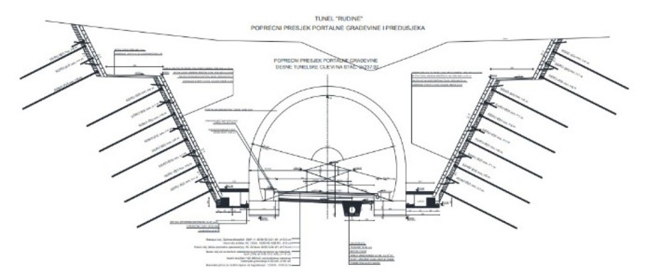 Zbog složene geološke građe, tunel se izvodi uz različite sustave podgrade koji se primjenjuju ovisno o kvaliteti stijenske mase, od lakših do izrazito ojačanih konstrukcijskih rješenja. Iskop se provodi kontroliranim miniranjem u etapama, uz stalno osiguranje svoda i bokova mlaznim betonom, čeličnim mrežama i sidrima. Posebna pažnja posvećena je stabilnosti portala i predusjeka, gdje se teren dodatno učvršćuje i oblikuje kako bi se spriječila erozija i odroni. U zoni portala primjenjuju se i kamene obloge te drenažni sustavi koji preuzimaju površinske i procjedne vode.