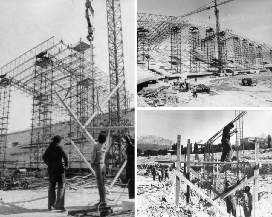 Gledališta su postavljena na zapadnoj i istočnoj strani školjke, dok je razdjelnica ostavljena kao slobodan, nenatkriven prostor. Tlocrtnom i lučnom formom rešetkasti krov smione metalne konstrukcije prati gledalište. S obodne zone oko stadiona 12 mostova širine 6 metara, s rasponom od 30 do 40 metara, te osam ulaznih stubišta vode posjetitelje neposredno u gledalište.