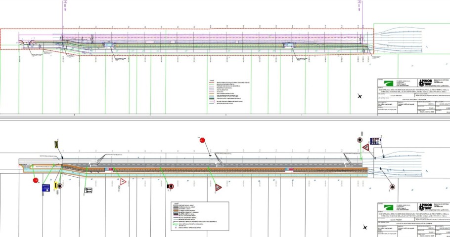 Odvodnja ispod proširenih dijelova kolnika riješena je također nagibom prema nasipu i kanalima, uz dodatni sloj kamenog materijala koji omogućuje procjeđivanje vode. Svi spojevi unutar sustava moraju biti izvedeni tako da ne propuštaju vodu, čime se sprječava oštećenje konstrukcije. Točan položaj svih elemenata odvodnje definiran je u projektnoj dokumentaciji, zajedno s njihovim koordinatama.