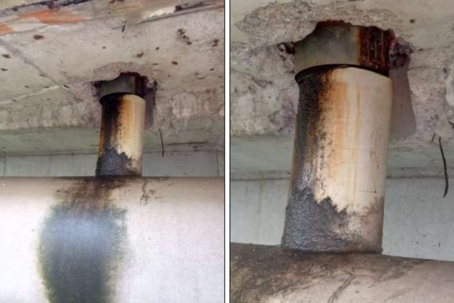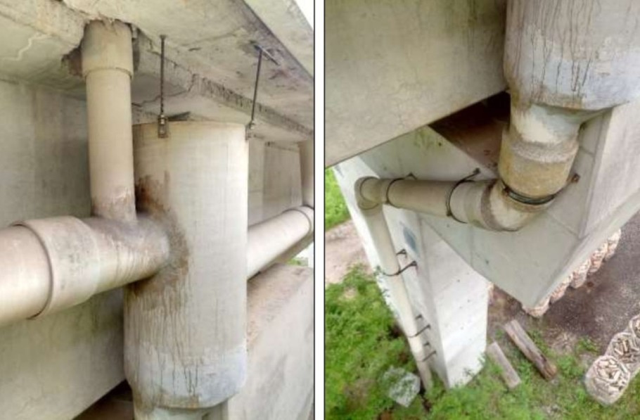 Najveći problem predstavljaju vertikalne cijevi koje odvode vodu iz slivnika – čak oko 80 % njih je u lošem stanju. Metalni dijelovi koji ih drže zahvaćeni su korozijom zbog stalnog kontakta s vodom, a na više mjesta cijevi su se potpuno odvojile od glavnog sustava, što onemogućuje pravilno otjecanje kišnice. Također, na mjestima gdje se most 'širi i skuplja' zbog promjena temperature potrebno je ugraditi kvalitetnije fleksibilne spojeve kako bi sustav bio otporniji.