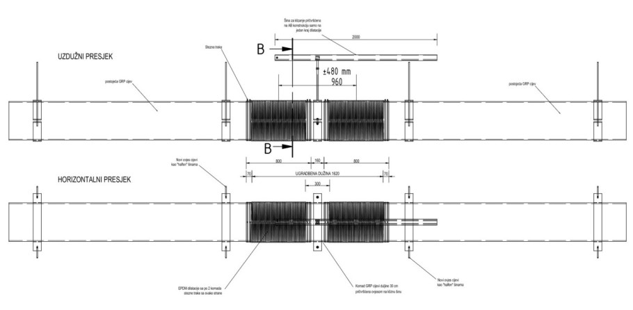 Uz to, predviđena je ugradnja kvalitetnijih fleksibilnih spojnih elemenata koji omogućuju da se konstrukcija mosta prirodno širi i skuplja zbog promjena temperature, bez pucanja ili oštećenja cijevi. Ovi elementi postavljaju se na više točaka duž vijadukta i omogućuju sigurne pomake konstrukcije, čime se dugoročno povećava pouzdanost cijelog sustava odvodnje.
