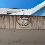 – Tragovi vlaženja na vanjskom rubu cijelom duljinom nadstrešnice/Vlaženje s izluživanjem u podgledu nadstrešnice/Tragovi curenja na vanjskom rubu ploče, vlaženje i izluživanje u podgledu/Detalj izluživanja i procurivanja u podgledu ploče opisi su ispod slika koje pokazuju navedene probleme na pročelju.