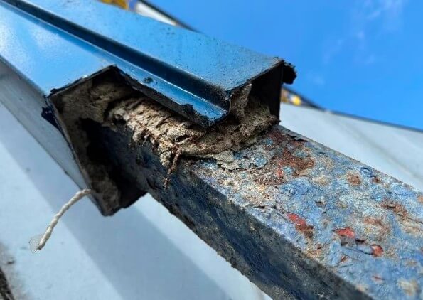 Na zategi 4 uz ljuštenje čelika vidljivo je i smanjenje presjeka, a i taj problem je ponavljajući. Sa zatege 8 doduše nije skinuta obloga te ova zatega nije dostupna za pregled. Ipak, na sidrenom elementu te zatege uočen je potpuni izostanak AKZ-a, s uznapredovalom korozijom i ljuštenjem čelika.
