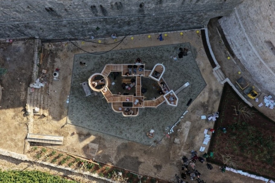 Ugrađena je nova urbana oprema, uključujući klupe, rasvjetu i elemente za boravak, čime je prostor prilagođen duljem zadržavanju korisnika. Posebno se ističe tematsko dječje igralište inspirirano vizurom stare gradske jezgre, koje dodatno naglašava identitet lokacije.